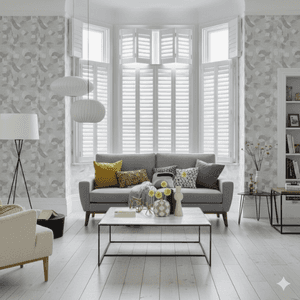Plantation shutters with wider louvres (76-89mm) balance a modern look with practical light control.